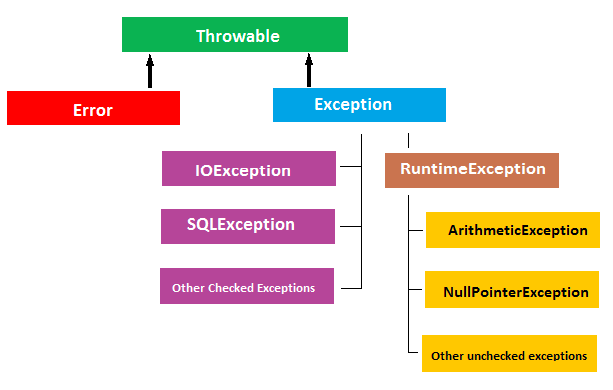 - 에러 : 프로그램 코드에서 해결 할 수 없는 심각한 오류( JVM 오류, 메모리 부족등)